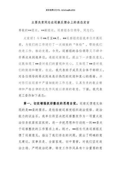 / 【七哥公文】2024年:主要负责同志在巡察反馈会上的表态发言+更多免费公文+VX:QiGeGongWen2024