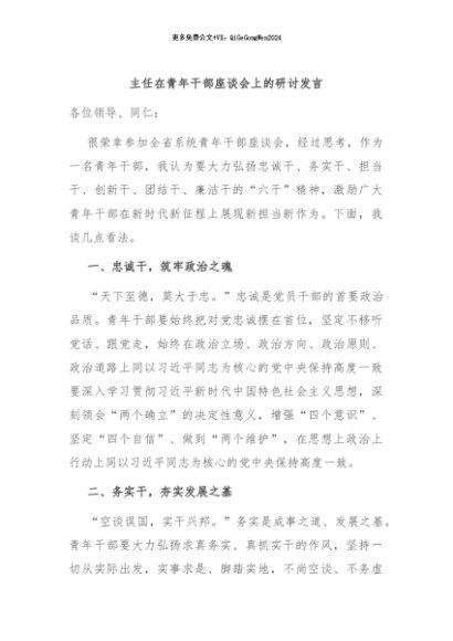 / 【七哥公文】2024年:主任在青年干部座谈会上的研讨发言+更多免费公文+VX:QiGeGongWen2024