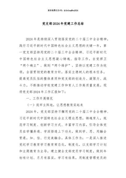 / 【七哥公文】2024年:党支部2024年党建工作总结+更多免费公文+VX:QiGeGongWen2024