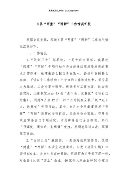 / 【七哥公文】2024年:X县“两重”“两新”工作情况汇报+更多免费公文+VX:QiGeGongWen2024