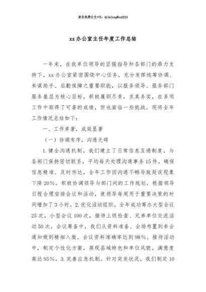 / 【七哥公文】2024年:xx办公室主任年度工作总结+更多免费公文+VX:QiGeGongWen2024