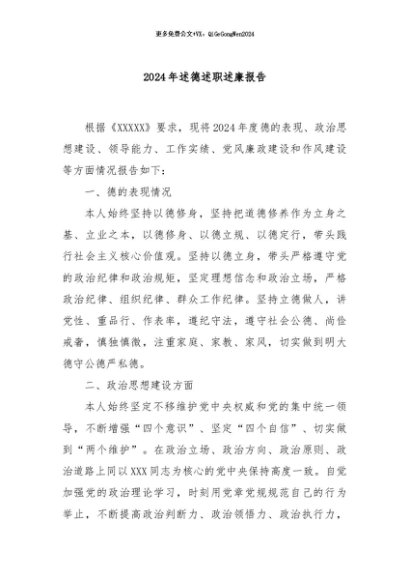 【七哥公文】2024年:2024年述德述职述廉报告+更多免费公文+VX:QiGeGongWen2024