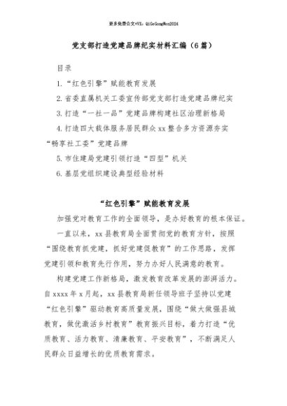 / 【七哥公文】2024年:(6篇)党支部打造党建品牌纪实材料汇编+更多免费公文+VX:QiGeGongWen2024