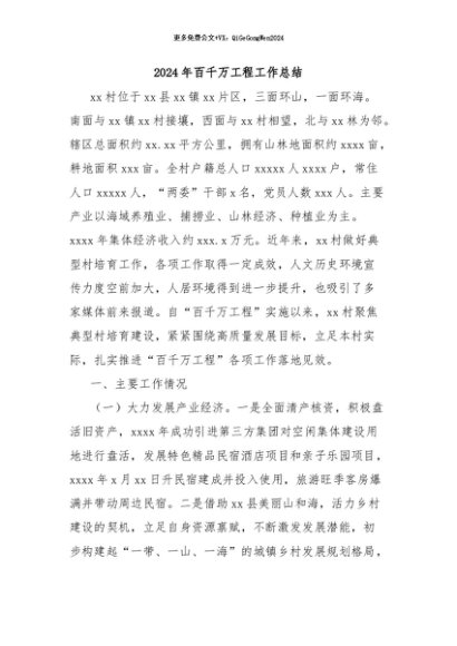 / 【七哥公文】2024年:2024年百千万工程工作总结+更多免费公文+VX:QiGeGongWen2024
