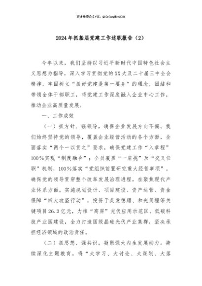 / 【七哥公文】2024年:2024年抓基层党建工作述职报告(2)+更多免费公文+VX:QiGeGongWen2024