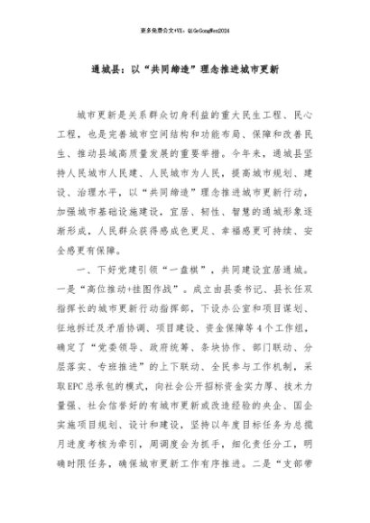 / 【七哥公文】2024年:通城县:以“共同缔造”理念推进城市更新+更多免费公文+VX:QiGeGongWen2024