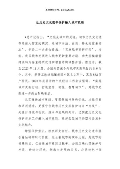 / 【七哥公文】2024年:让历史文化遗存保护融入城市更新+更多免费公文+VX:QiGeGongWen2024