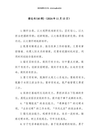 / 【七哥公文】2024年:(40例)排比句(2024年11月15日)+更多免费公文+VX:QiGeGongWen2024