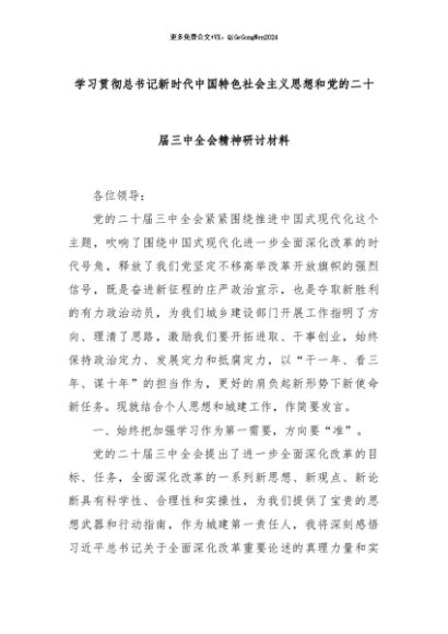 【七哥公文】2024年:学习贯彻总书记新时代中国特色社会主义思想和党的二十届三中全会精神研讨材料+更多免费公文+VX:QiGeGongWen2024