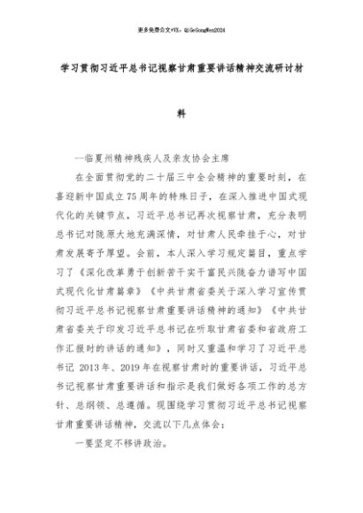 【七哥公文】2024年:学习贯彻习近平总书记视察甘肃重要讲话精神交流研讨材料+更多免费公文+VX:QiGeGongWen2024