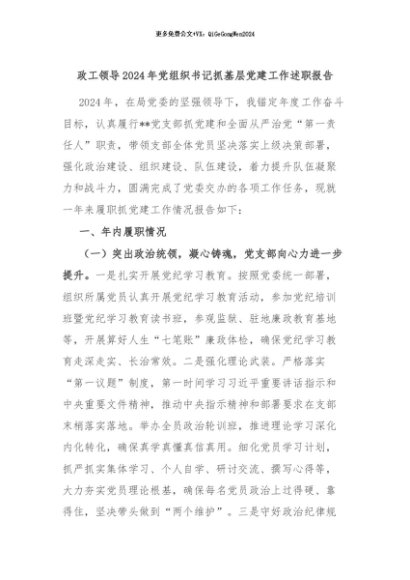 【七哥公文】2024年:政工领导2024年党组织书记抓基层党建工作述职报告+更多免费公文+VX:QiGeGongWen2024