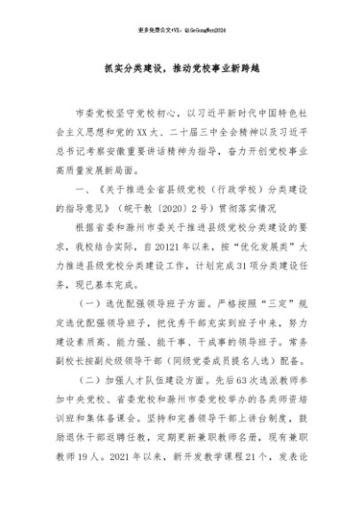 / 【七哥公文】2024年:抓实分类建设,推动党校事业新跨越+更多免费公文+VX:QiGeGongWen2024