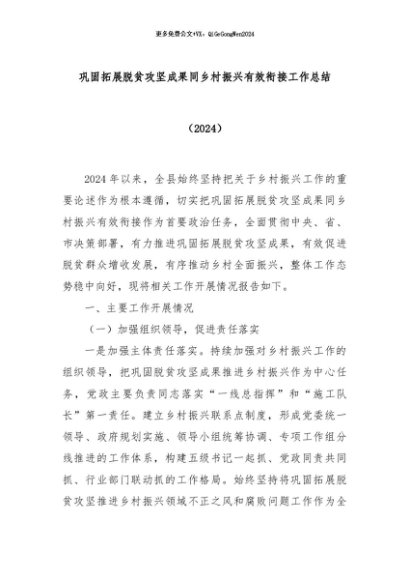 【七哥公文】2024年:巩固拓展脱贫攻坚成果同乡村振兴有效衔接工作总结(2024)+更多免费公文+VX:QiGeGongWen2024