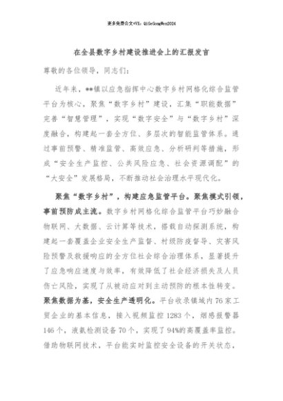 / 【七哥公文】2024年:在全县数字乡村建设推进会上的汇报发言+更多免费公文+VX:QiGeGongWen2024