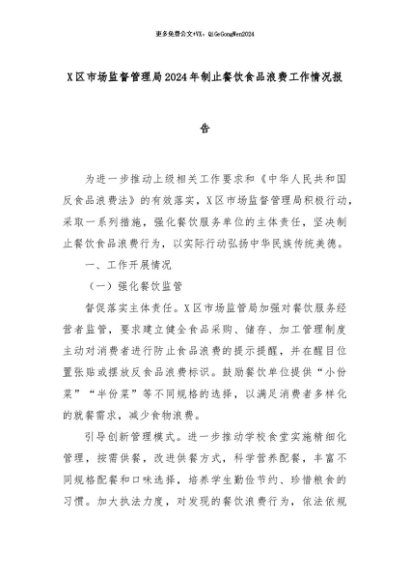 【七哥公文】2024年:X区市场监督管理局2024年制止餐饮食品浪费工作情况报告+更多免费公文+VX:QiGeGongWen2024