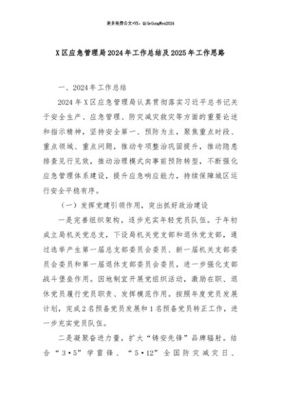 【七哥公文】2024年:X区应急管理局2024年工作总结及2025年工作思路+更多免费公文+VX:QiGeGongWen2024