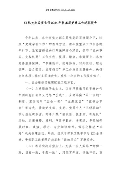 / 【七哥公文】2024年:XX机关办公室主任2024年抓基层党建工作述职报告+更多免费公文+VX:QiGeGongWen2024
