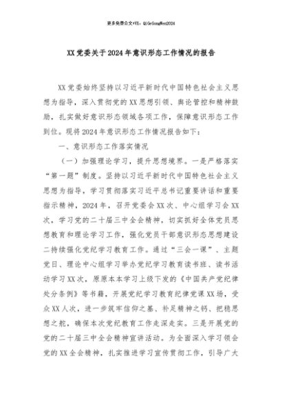 / 【七哥公文】2024年:XX党委关于2024年意识形态工作情况的报告+更多免费公文+VX:QiGeGongWen2024