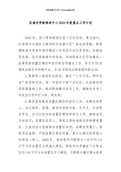 【七哥公文】2024年:区城市更新推进中心2023年度重点工作计划+更多免费公文+VX:QiGeGongWen2024