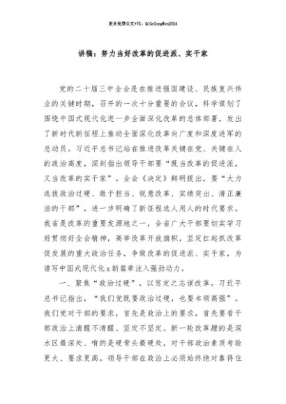 / 【七哥公文】2024年:讲稿:努力当好改革的促进派、实干家+更多免费公文+VX:QiGeGongWen2024