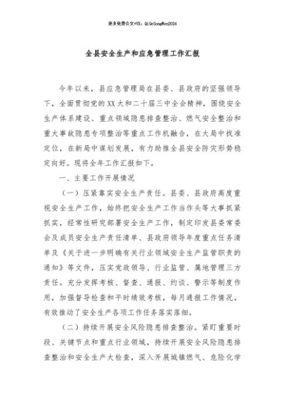 / 【七哥公文】2024年:全县安全生产和应急管理工作汇报+更多免费公文+VX:QiGeGongWen2024