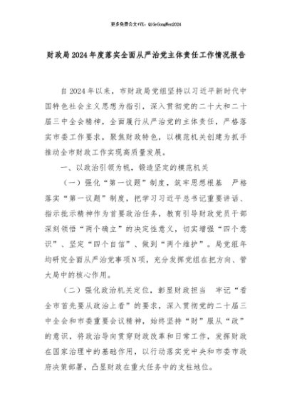 【七哥公文】2024年:财政局2024年度落实全面从严治党主体责任工作情况报告+更多免费公文+VX:QiGeGongWen2024