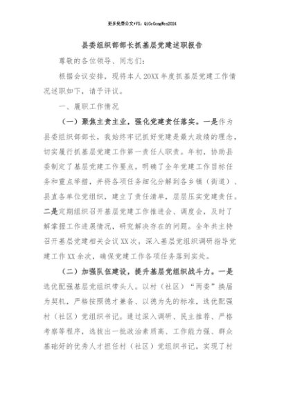 / 【七哥公文】2024年:县委组织部部长抓基层党建述职报告+更多免费公文+VX:QiGeGongWen2024