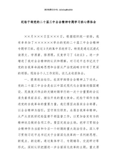 / 【七哥公文】2024年:纪检干部党的二十届三中全会精神专题学习班心得体会+更多免费公文+VX:QiGeGongWen2024