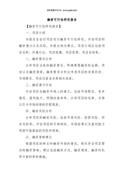 【七哥公文】2024年:融资可行性研究报告+更多免费公文+VX:QiGeGongWen2024
