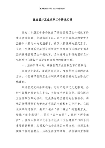 / 【七哥公文】2024年:深化医疗卫生改革工作情况汇报+更多免费公文+VX:QiGeGongWen2024