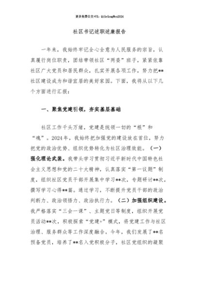 【七哥公文】2024年:社区书记述职述廉报告+更多免费公文+VX:QiGeGongWen2024