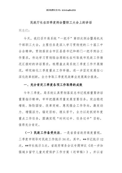 / 【七哥公文】2024年:民政厅长在四季度例会暨职工大会上的讲话+更多免费公文+VX:QiGeGongWen2024