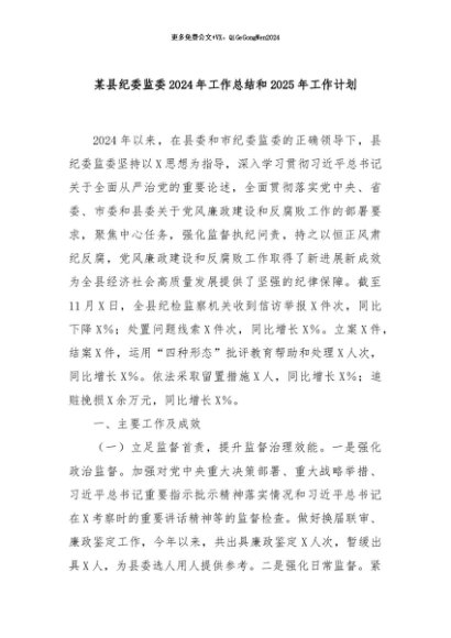 【七哥公文】2024年:某县纪委监委2024年工作总结和2025年工作计划+更多免费公文+VX:QiGeGongWen2024