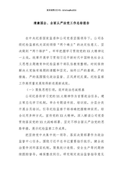 / 【七哥公文】2024年:清廉国企、全面从严治党工作总结报告+更多免费公文+VX:QiGeGongWen2024