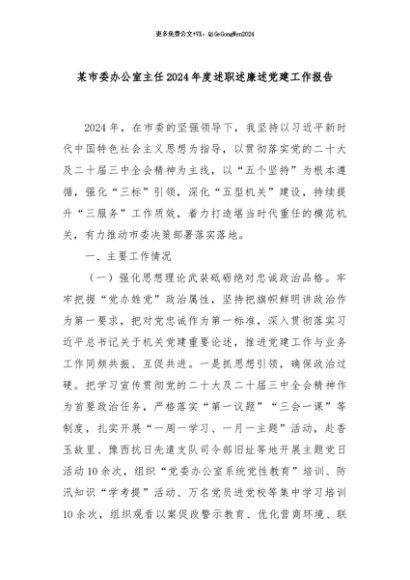 【七哥公文】2024年:某市委办公室主任2024年度述职述廉述党建工作报告+更多免费公文+VX:QiGeGongWen2024