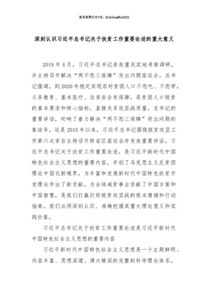 【七哥公文】2024年:深刻认识习近平总书记关于扶贫工作重要论述的重大意义+更多免费公文+VX:QiGeGongWen2024