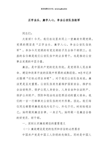 / 【七哥公文】2024年:正字当头、廉字入心,争当公安队伍铁军+更多免费公文+VX:QiGeGongWen2024