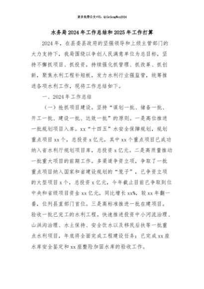 / 【七哥公文】2024年:水务局2024年工作总结和2025年工作打算+更多免费公文+VX:QiGeGongWen2024