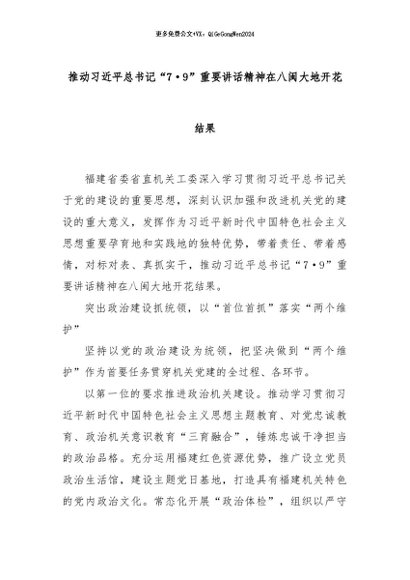 【七哥公文】2024年:推动习近平总书记“7·9”重要讲话精神在八闽大地开花结果+更多免费公文+VX:QiGeGongWen2024