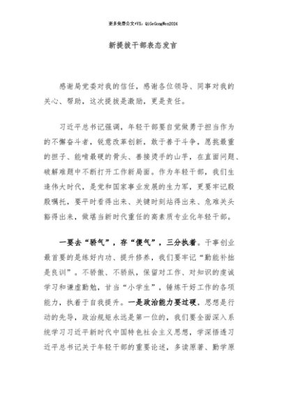 / 【七哥公文】2024年:新提拔干部表态发言+更多免费公文+VX:QiGeGongWen2024