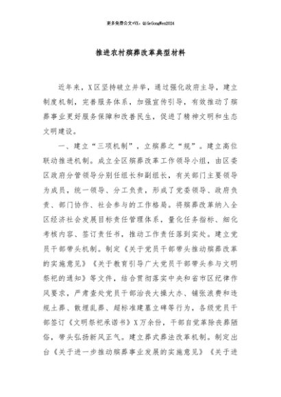 / 【七哥公文】2024年:推进农村殡葬改革典型材料+更多免费公文+VX:QiGeGongWen2024