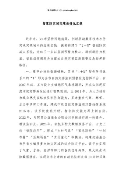 / 【七哥公文】2024年:智慧防灾减灾建设情况汇报+更多免费公文+VX:QiGeGongWen2024