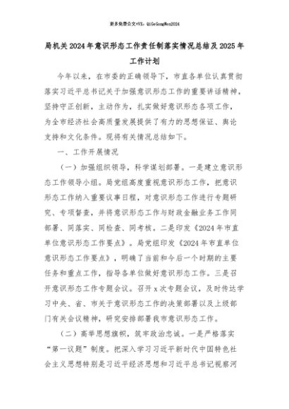 【七哥公文】2024年:局机关2024年意识形态工作责任制落实情况总结及2025年工作计划+更多免费公文+VX:QiGeGongWen2024