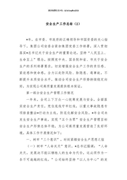 / 【七哥公文】2024年:安全生产工作总结(2)+更多免费公文+VX:QiGeGongWen2024