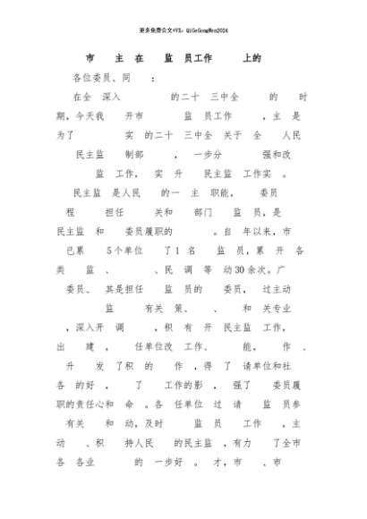 / 【七哥公文】2024年:市政协主席在特约监督员工作座谈会上的讲话+更多免费公文+VX:QiGeGongWen2024