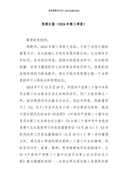 / 【七哥公文】2024年:思想汇报(2024年第三季度)+更多免费公文+VX:QiGeGongWen2024