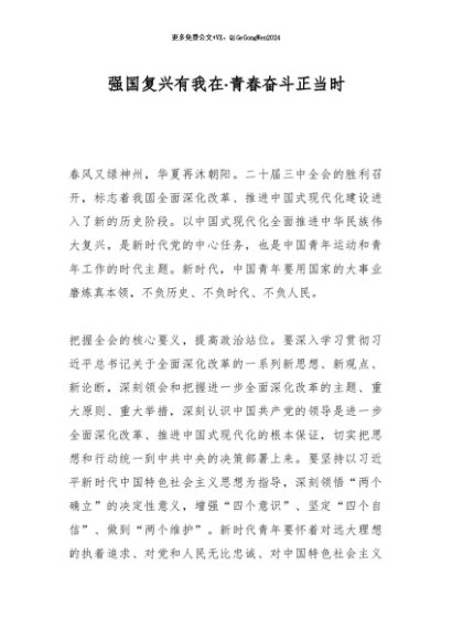 【七哥公文】2024年:强国复兴有我在·青春奋斗正当时+更多免费公文+VX:QiGeGongWen2024