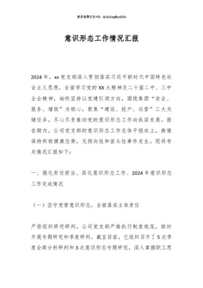 / 【七哥公文】2024年:意识形态工作情况汇报+更多免费公文+VX:QiGeGongWen2024
