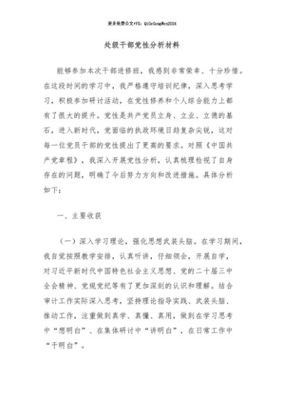 / 【七哥公文】2024年:处级干部党性分析材料+更多免费公文+VX:QiGeGongWen2024