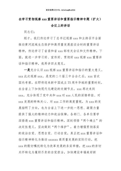 【七哥公文】2024年:在学习贯彻视察xxx重要讲话和重要指示精神专题(扩大)会议上的讲话+更多免费公文+VX:QiGeGongWen2024